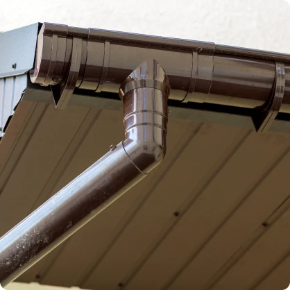 Reparación de tejados con atap nuevo de color marrón y pipa de canalón para lluvia